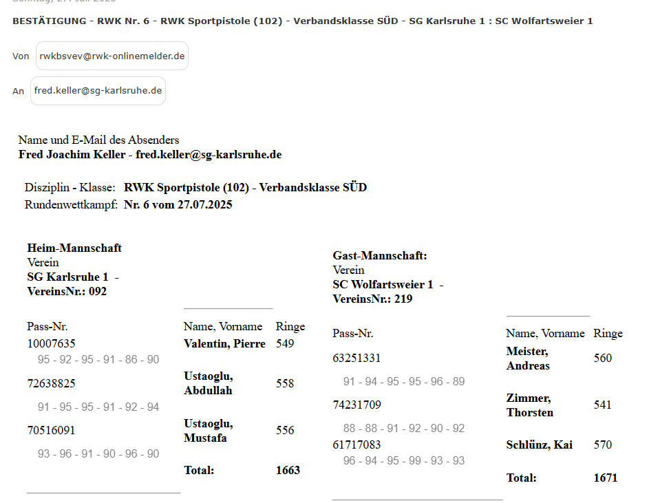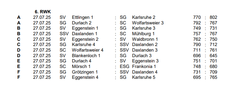 17.07.2025 - RWK 6 - Pistole 25 m - Verbandsklasse SÜD-SG Karlsruhe 1